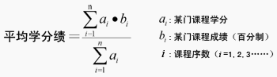 课程成绩采取平均学分绩的方式进行计算,具体计算公式如下:
