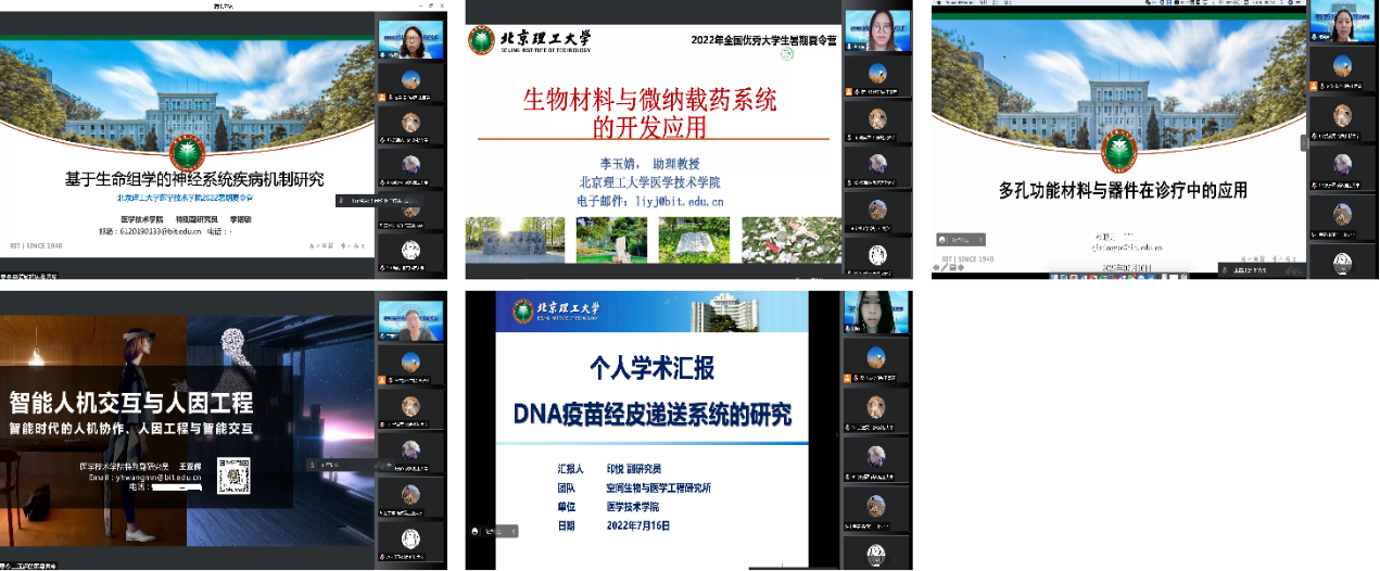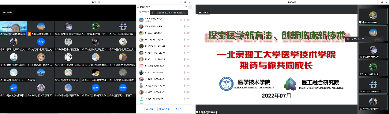 为吸引全国优秀大学生来我院深造学习,bw必威西汉姆联官方网站betway西汉姆联官网于7月15日至7月17日成功举办了“bw必威西汉姆联官方网站betway西汉姆联官网2022年全国优秀大学生暑期夏令营”。本次夏令营全程采取线上形式,历时3天,融合了“五个一”云活动,以期塑造一个不一样的“北理工医学技术学院云印象”。本次活动共吸引全国50余所高校100余名本科生踊跃报名,经学院初选、研究生院审核,最终确定55名优秀大学生参加本次夏令营活动。